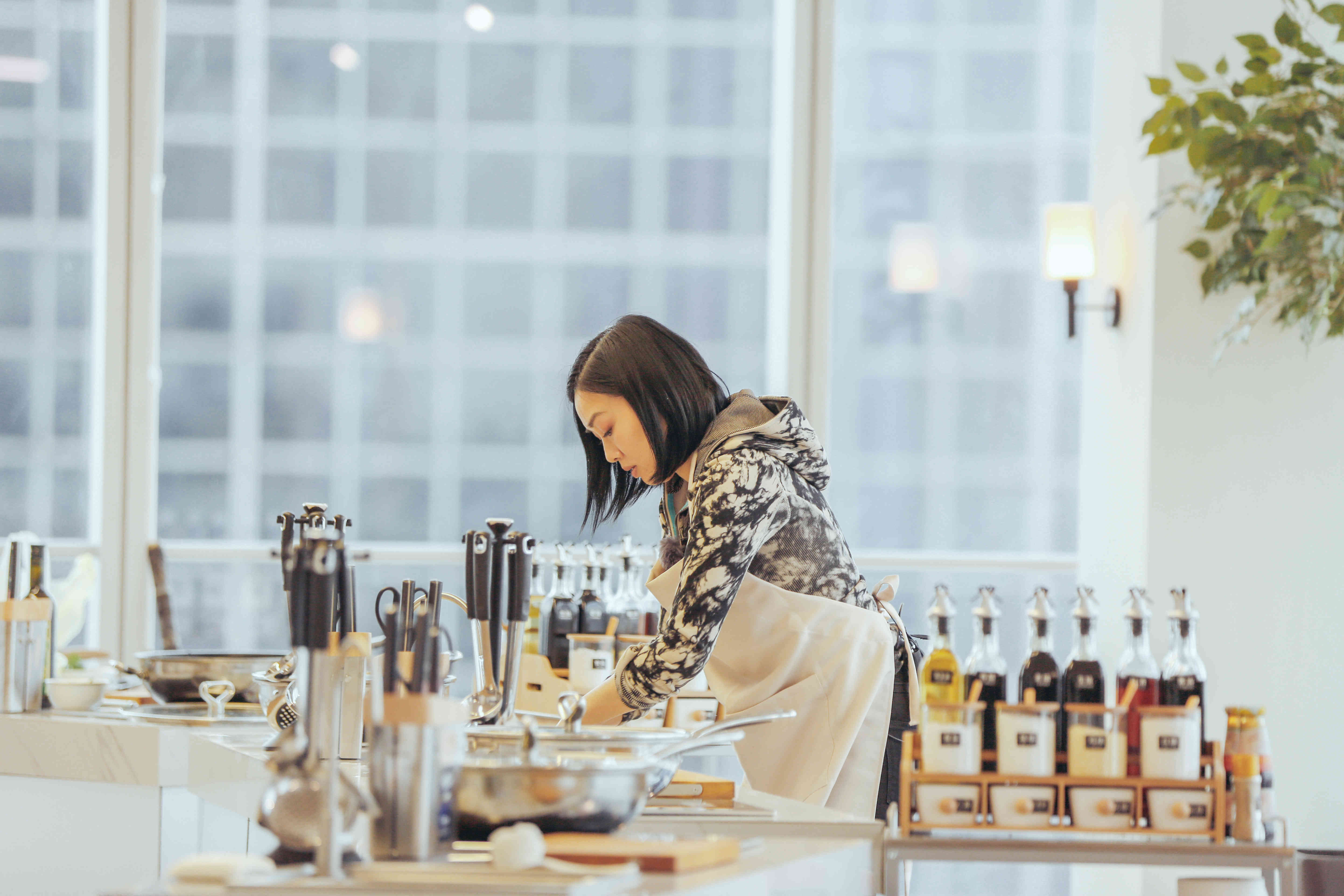 入住第一天,妻子们外出买菜后陆续到达餐具齐备的厨房,为丈夫及妈妈们烹饪晚餐,极具温馨之感。