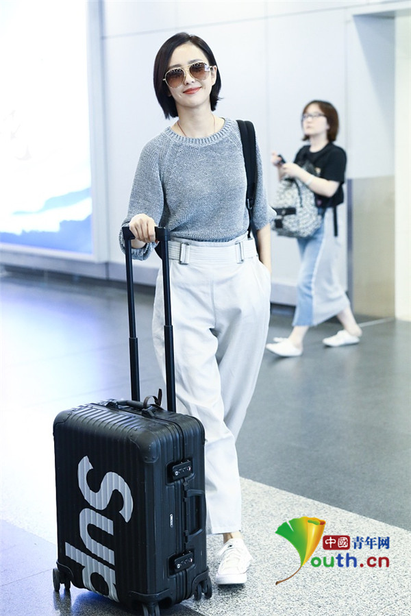 2019年6月2日,北京,佟丽娅现身机场。她穿高级灰针织衫配高腰裤,身材气质双在线,推行李赶路全程露笑,对镜噘嘴比v萌态十足,嫩回18岁。