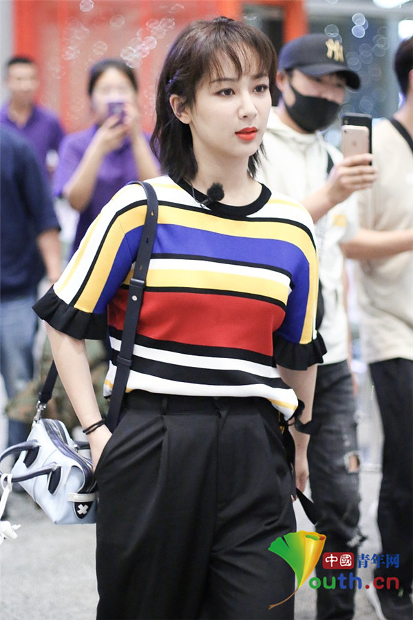 2019年6月5日,北京,杨紫现身机场。她穿着拼色条纹衫笑容甜美,深夜赶飞机依旧元气十足活力满满。据悉,杨紫和王俊凯乘坐同班飞机,两人一同飞往国外录制综艺节目《中餐厅》。而当晚机场的粉丝更是多到让杨紫受惊吓,但冰雪聪明的她很快恢复表情,跟工作人员说自己也是小凯的粉丝。