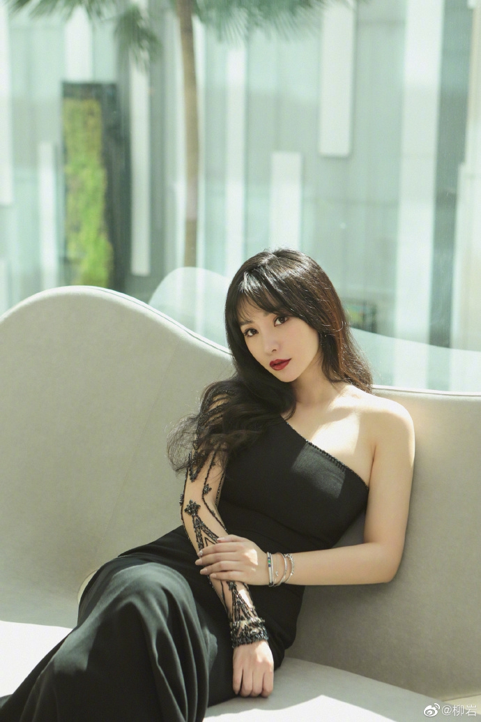 6月25日,柳岩在微博晒出一组照片。照片中,柳岩身穿黑色长裙,香肩半露,长发披散,身材窈窕,烈焰红唇,妆容精致大方,熟女气质十分迷人。