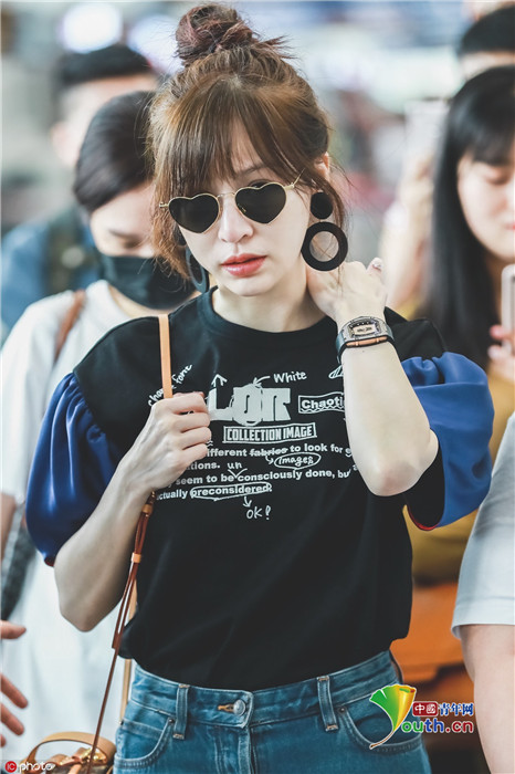 2019年6月30日,四川成都,王心凌现身机场。她戴着心形墨镜,与粉丝合影。