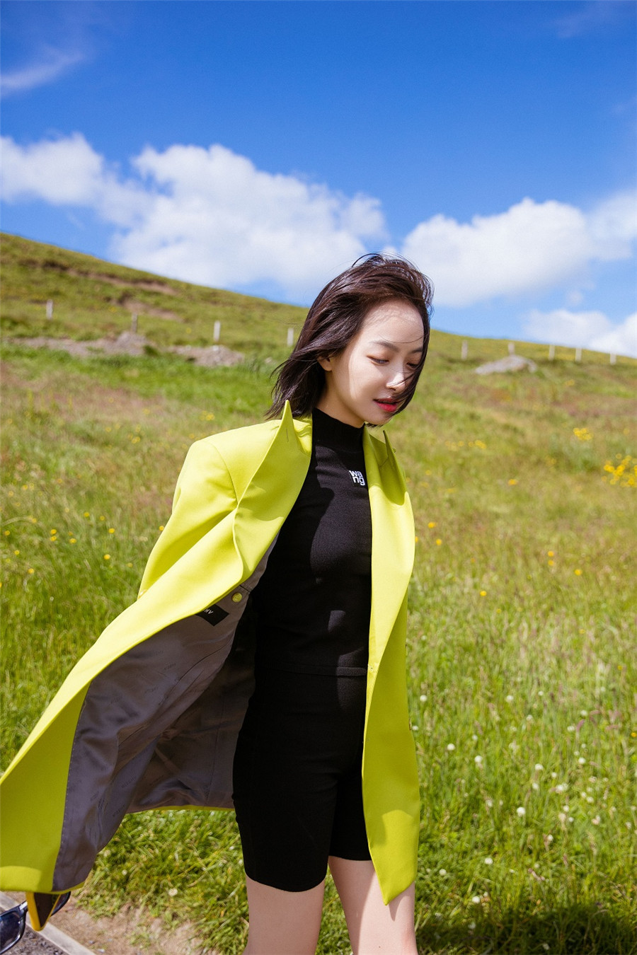 日前,宋茜释出一组爱尔兰旅行照,身穿芥末绿西装搭配黑色短裤尽情玩耍。照片中,宋茜置身于蓝天白云下,明媚的背景与鲜明的色彩十分呼应,清爽出行,享受惬意时光。