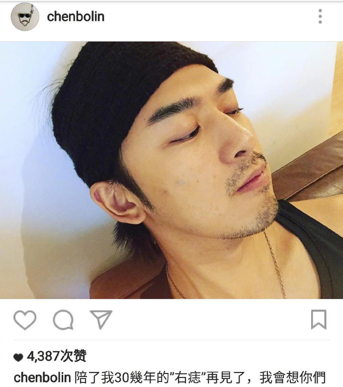 7月4日,陈柏霖在社交网站上晒出右脸照,并配文:“陪了我30几年的‘右痣’再见了,我会想你们的。” 同时,他本人也在评论区解释“点痣”的原因是担心脸上的痣是恶性,才决定消除。
