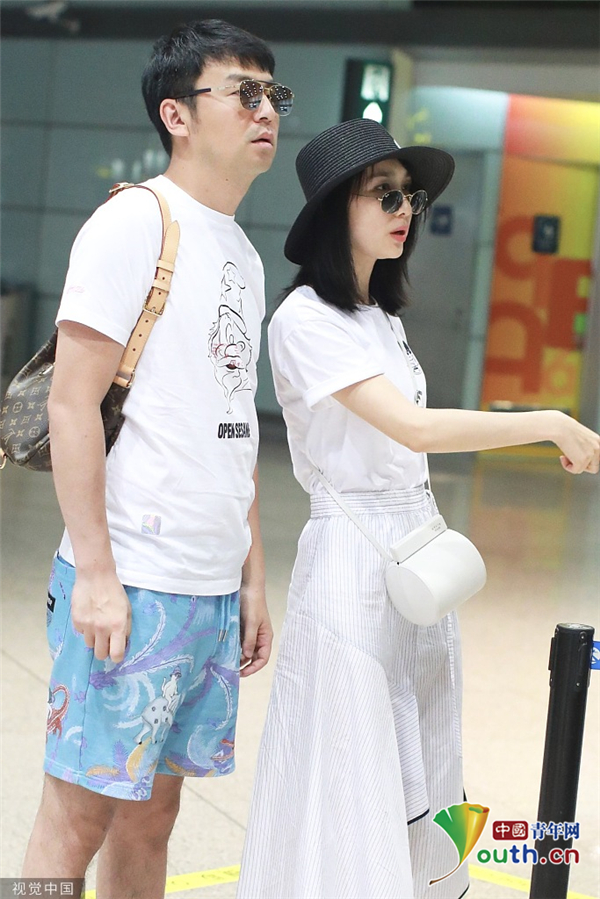 8月1日,北京,雷佳音和翟煦飞现身机场。雷佳音穿白T恤打扮清凉,穿花短裤走度假风,贴心陪伴老婆翟煦飞帮推行李箱低调撒狗粮。