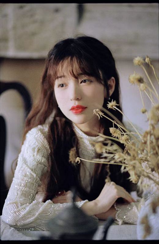 金莎复古写真甜美文艺 红唇长发大眼如芭比娃娃