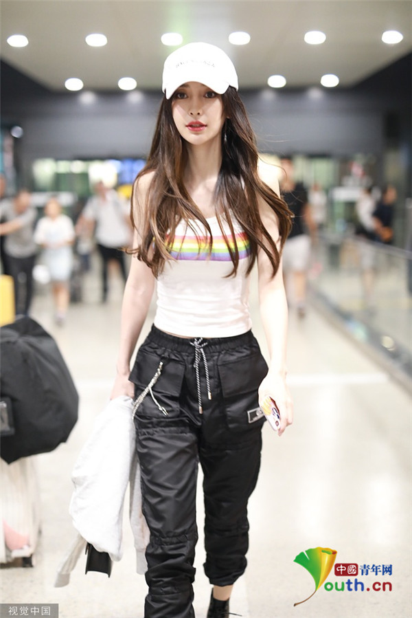 baby穿吊带衫工装裤又美又飒 眼眸明亮蛮腰超吸睛