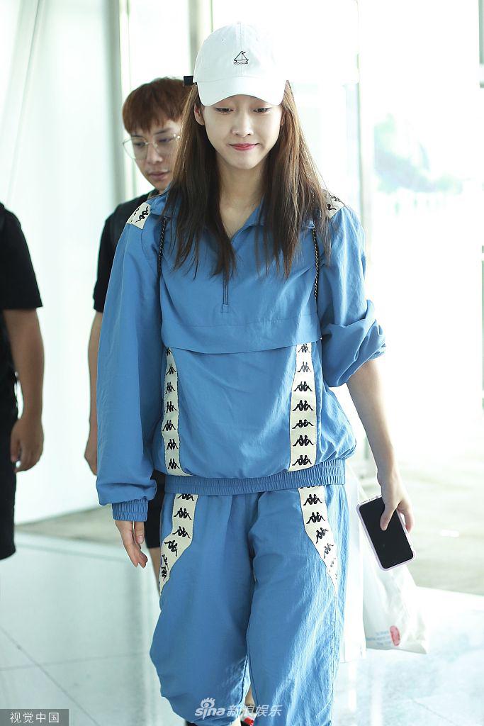8月15日,北京,宣璐现身机场。《陈情令》中饰演“师姐”的宣璐穿着蓝色运动套装变元气少女,撸起单只袖子挥手露梨涡,甜美可人敲可爱。