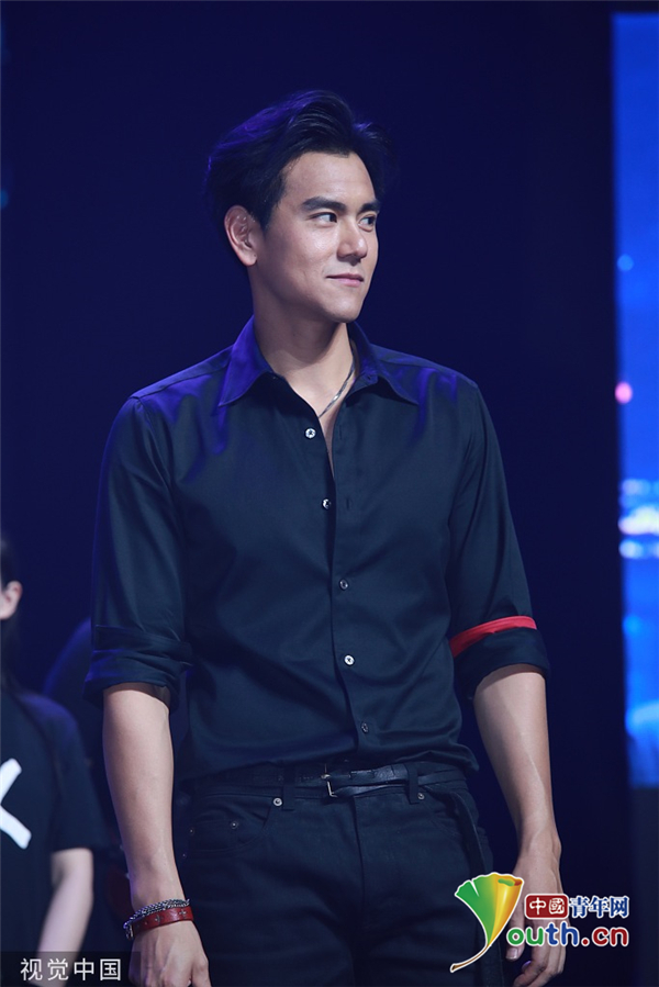 彭于晏一身黑装酷帅有型 表情丰富露出尖下巴显呆萌