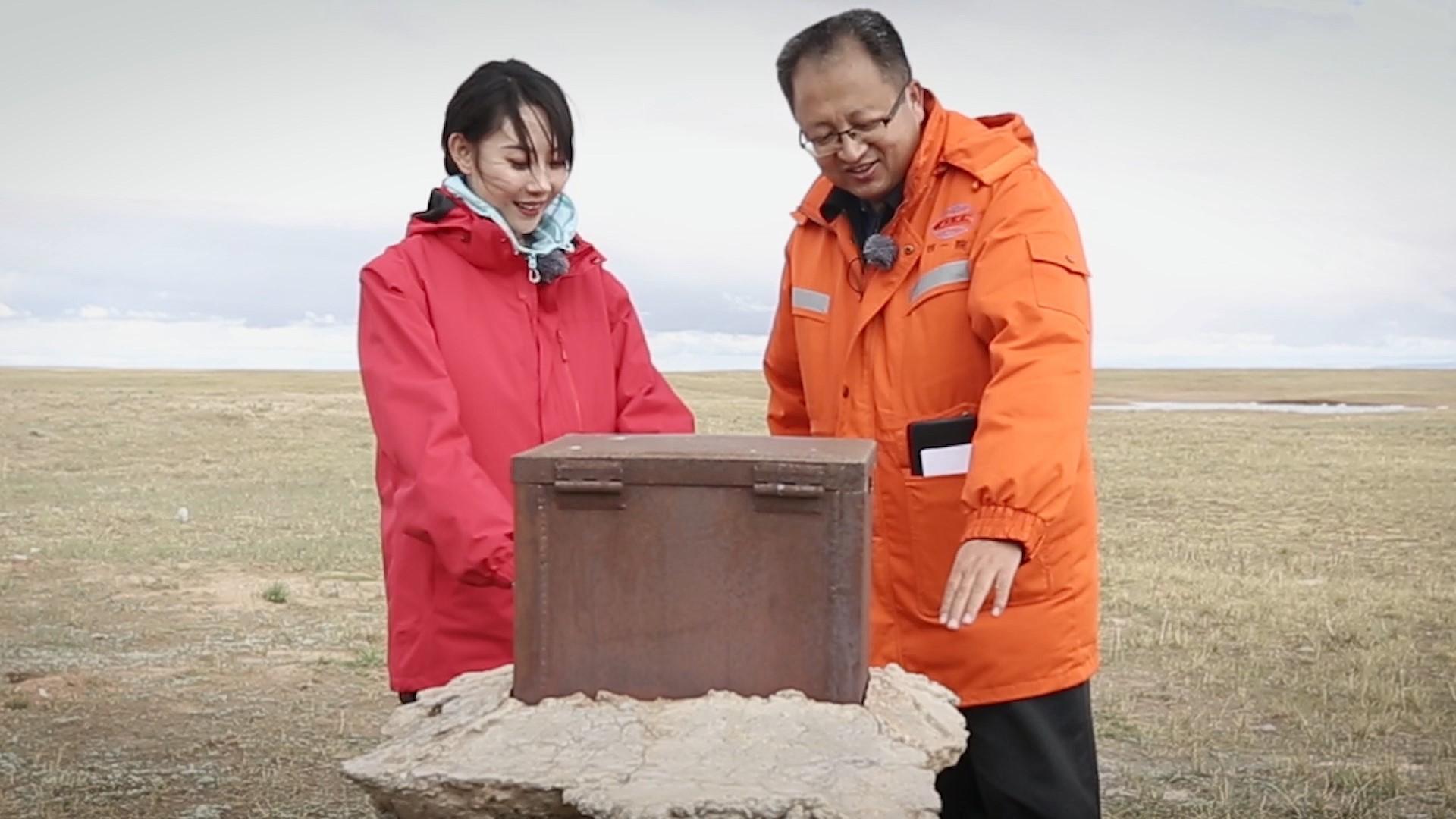 图右为青藏铁路第三代冻土研究专家 刘争平 在青藏高原进行冻土数据监测