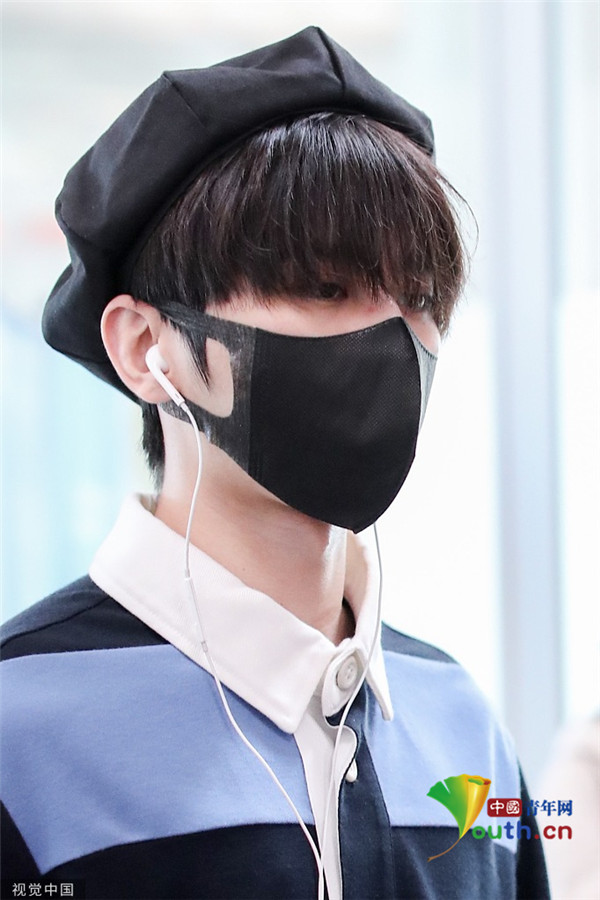 蔡徐坤戴贝雷帽文艺范十足 条纹T恤更衬少年气