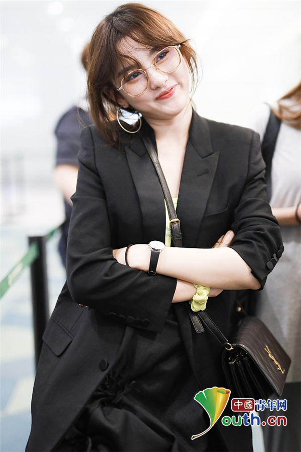 9月7日,上海,宋祖儿现身机场。她穿西装+长裙酷美范,戴大眼镜大耳环装饰配卷发红唇,撩发给粉丝抛媚眼,俏皮又女人。