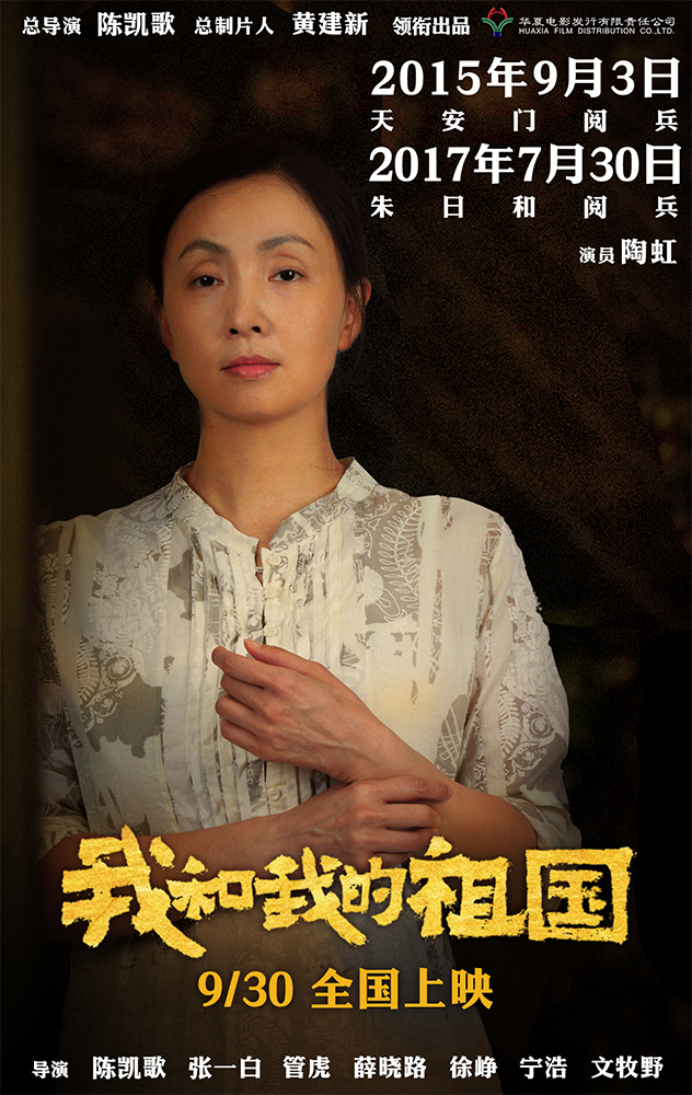 电影《我和我的祖国》由华夏电影发行有限责任公司领衔出品,由陈凯歌任总导演、黄建新任总制片人,陈凯歌、张一白、管虎、薛晓路、徐峥、宁浩、文牧野七位导演联袂打造,回溯新中国成立70周年难以忘怀的7个历史瞬间,唤起全民回忆。影片将于2019年9月30日全国上映,目前预售已全面开启。