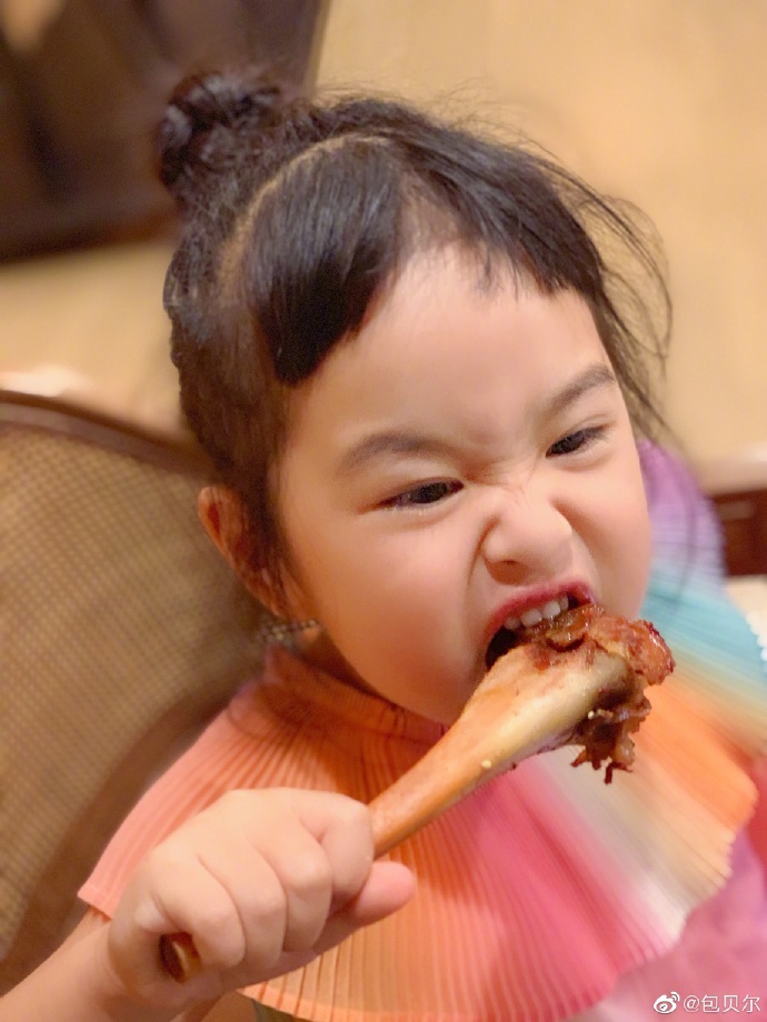 9月17日,包贝尔在微博分享了一组女儿饺子的可爱照片,并配文:“现实中的哪吒。”照片中,饺子一会儿哭得非常伤心,一会儿拿着大棒骨啃得非常认真。和妈妈包文婧越长越像,十分可爱。