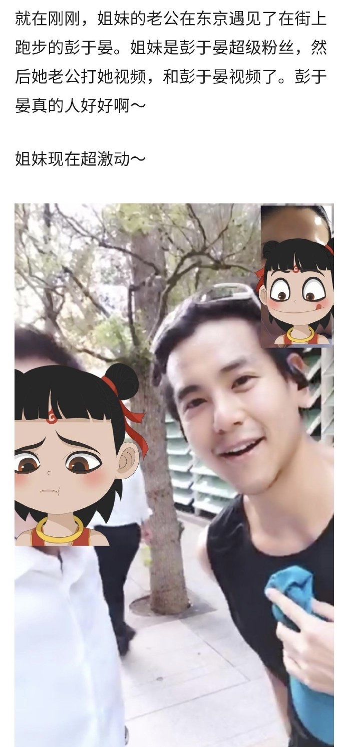 9月19日,有网友爆料自己老公在东京偶遇跑步的彭于晏,而彭于晏听说这位网友是自己粉丝后亲切地同意与该网友视频通话,可以说非常宠粉了。