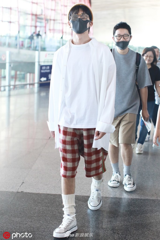 9月23日,井柏然现身北京机场。他身穿白色长袖,下搭格子短裤,白鞋白袜,整个人十分干净舒适。头戴墨镜帽子口罩的他把整个脸遮得严严实实。