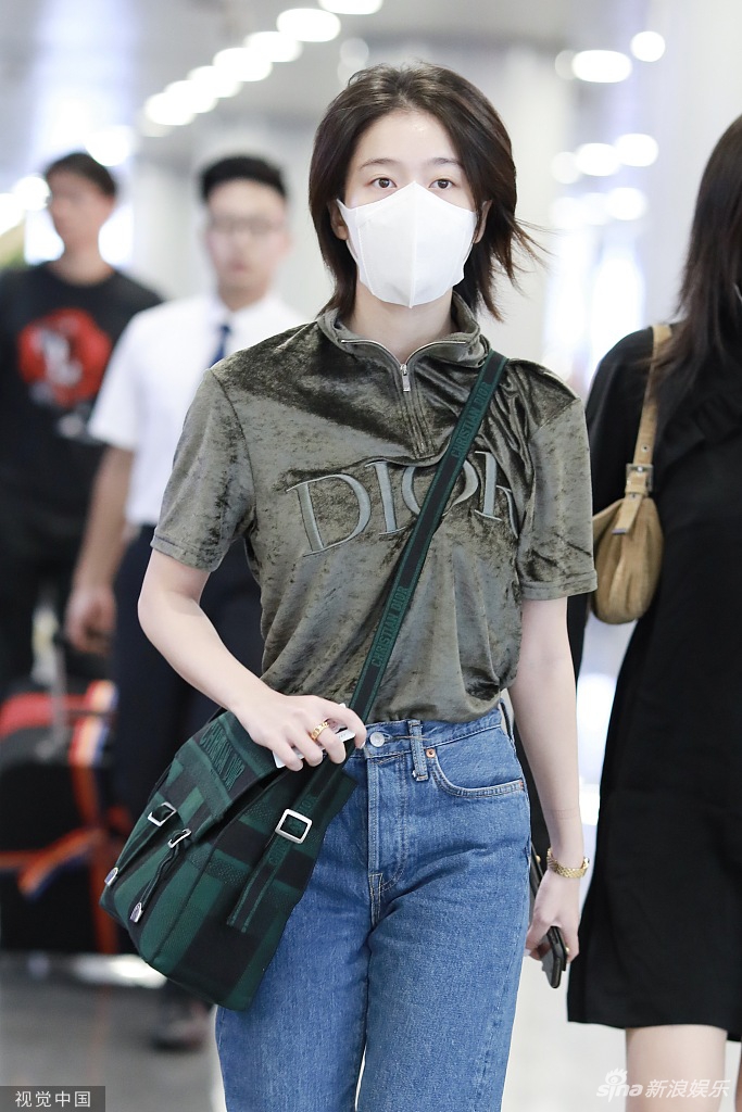 日前,张雪迎现身机场。她素颜口罩遮面留干练短发,造型以绿色为主色调尽显清新时尚。视觉中国/图