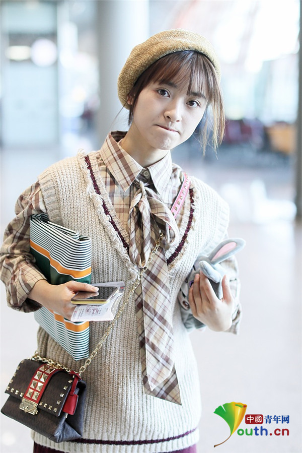 2019年10月28日,沈月现身机场,从北京飞往上海。她示范秋日穿搭文艺清新,戴贝雷帽化身清纯学生妹甜美可人。