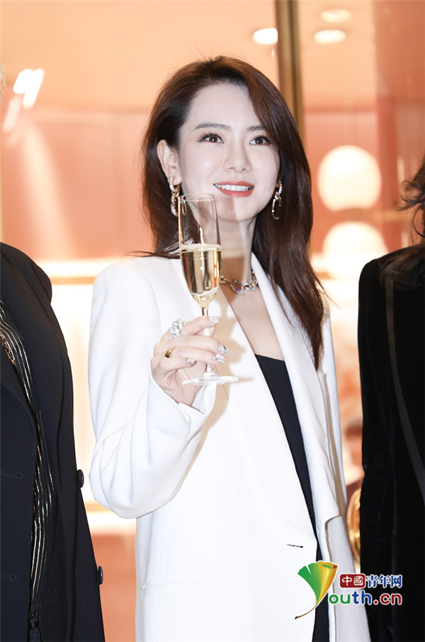 11月6日,上海,戚薇霖等明星现身品牌活动。戚薇身穿黑色抹胸裙外搭白色西装,美腿纤细魅力十足。