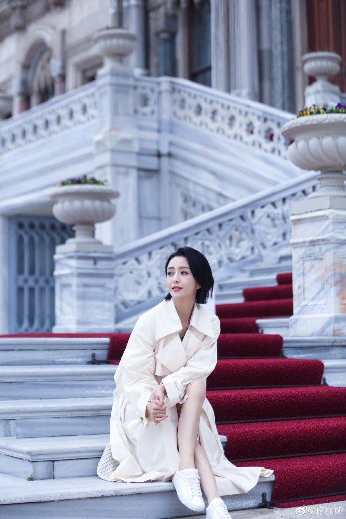 11月28日,佟丽娅在微博上分享了一组美照,并配文“难得的假期来几张游客照。”照片中,佟丽娅身穿白色风衣,坐在台阶上半露美腿,姿势撩人;短发造型梨涡浅笑,气质清新。