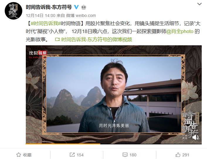 肖全跟随着岁月的脚步缓步而行,他默默地在镜头的背后,记录着一代又一代的鲜活面孔。肖全又会讲述怎样的作品故事,在没有ps的年代,肖全是如何成为“中国最好的人像摄影师”?张晓龙又会和他碰撞出怎样的火花?请锁定 12月18 日晚 18 点即将播出的《时间告诉我·东方符号》,和张晓龙一起走进光影世界。让我们一起期待胶片聚焦下的社会变化,一起回看“大时代”凝视“小人物”。