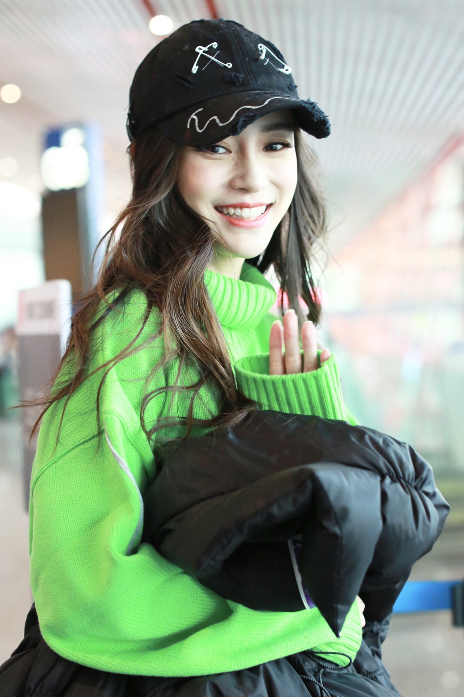 新浪娱乐讯 2019年12月22日,北京,杨颖(Angelababy)现身机场。她穿绿色毛衣青春靓丽,抱棉服赶路亲力亲为,与粉丝挥手签名互动亲和力爆棚。