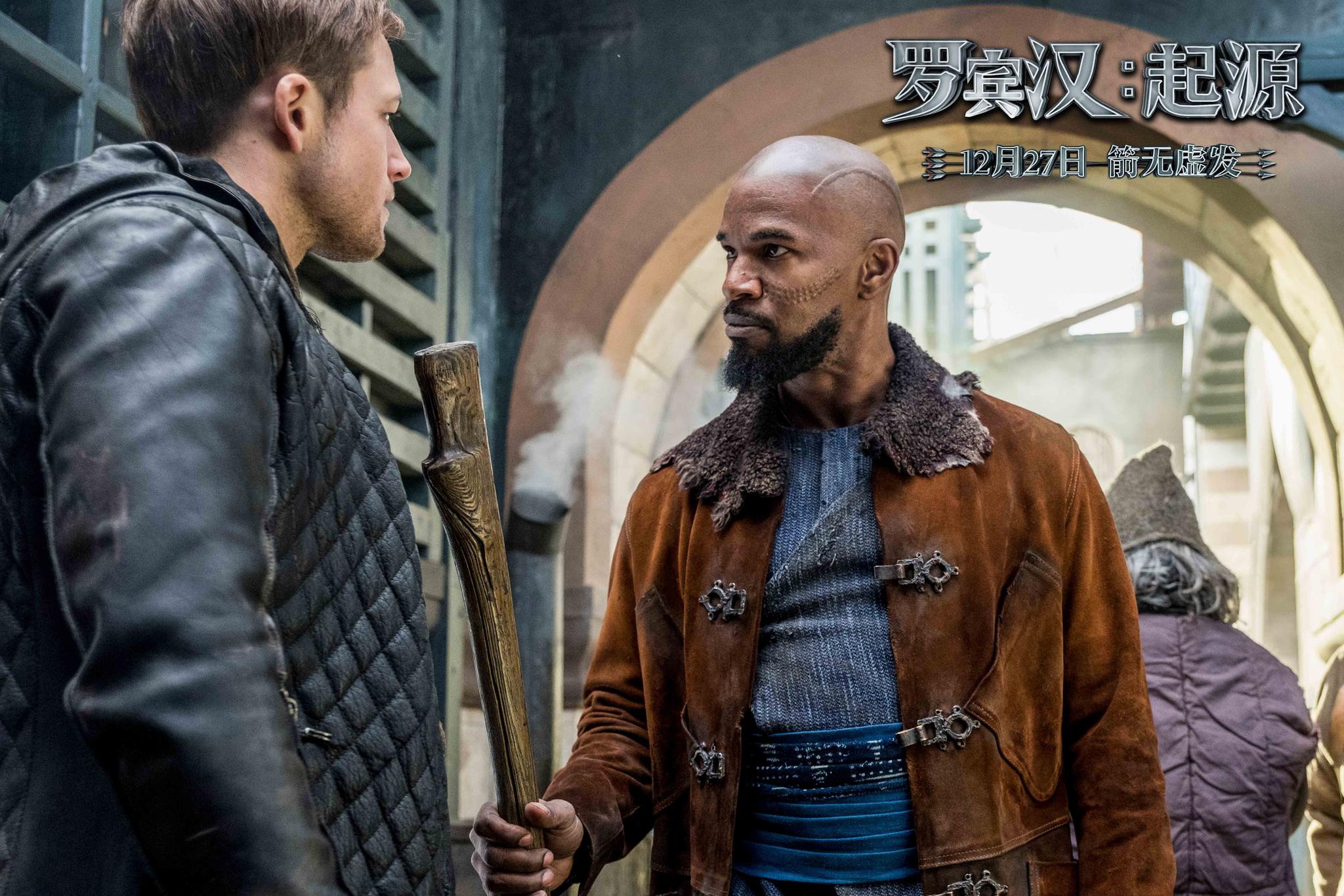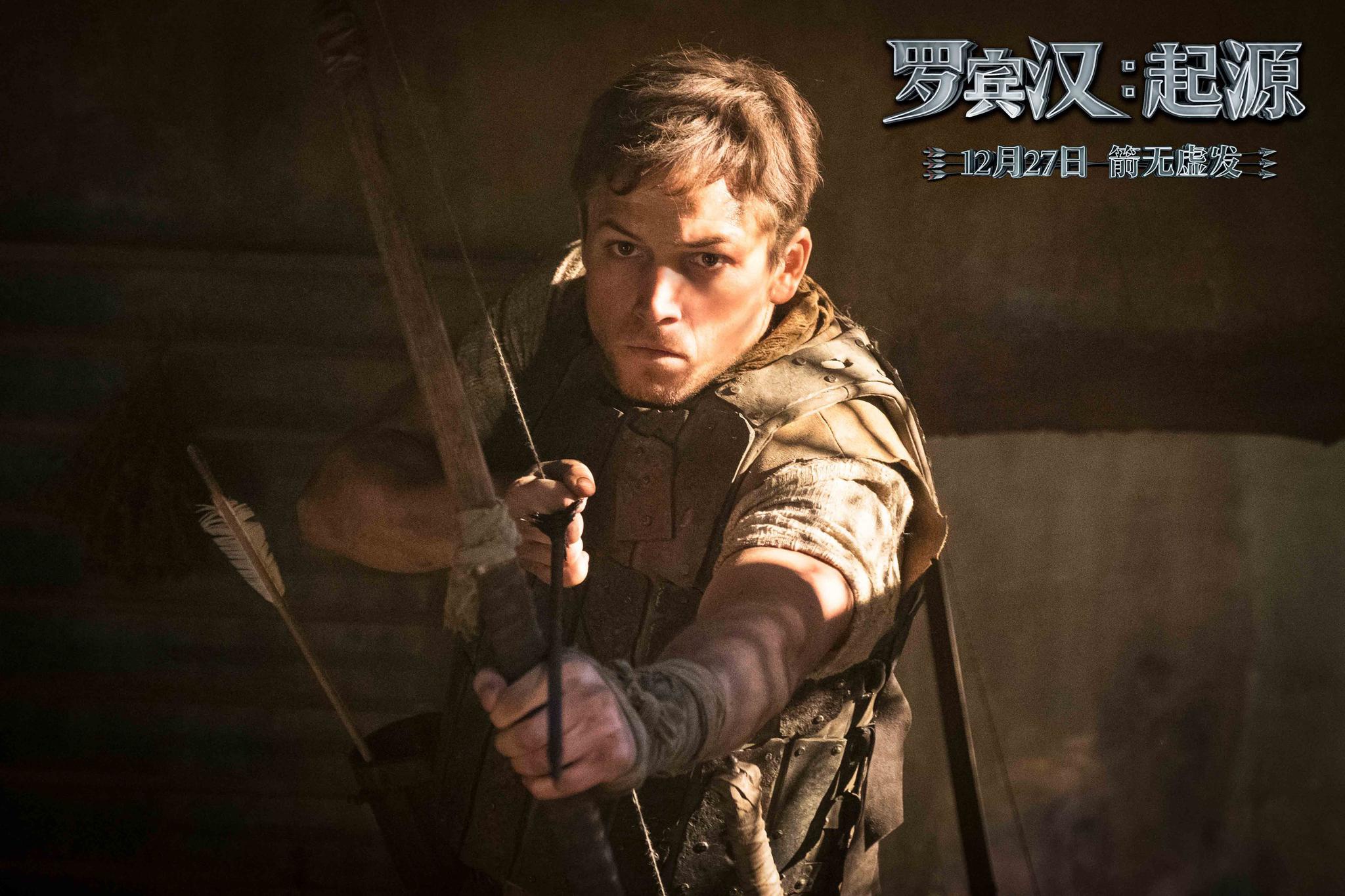影片此前曝光的物料中有大量惊险刺激的战争场面。由敌人操控的连射弩发出的金属箭头,犹如暴雨般倾泻而下,石墙雨打沙坑一般地被击穿、击碎,一时间尘土飞扬、碎片飞溅,士兵的肉体凡身顷刻间就会被夺去性命,还原出了危机四伏、险象环生的真实战争情境。罗宾汉只身潜入建筑缝隙,趁敌人不备一箭封喉,拿到了这场遭遇战的胜利。如此这般真实到让人屏住呼吸的战斗场景,在片中比比皆是。塔伦·艾格顿提前找老师训练射箭术,得偿所愿地在镜头中奉献出多个精彩漂亮的动作戏,把一名传奇神箭手轻巧的身姿、敏捷的反应和非凡的智慧表现得淋漓尽致。