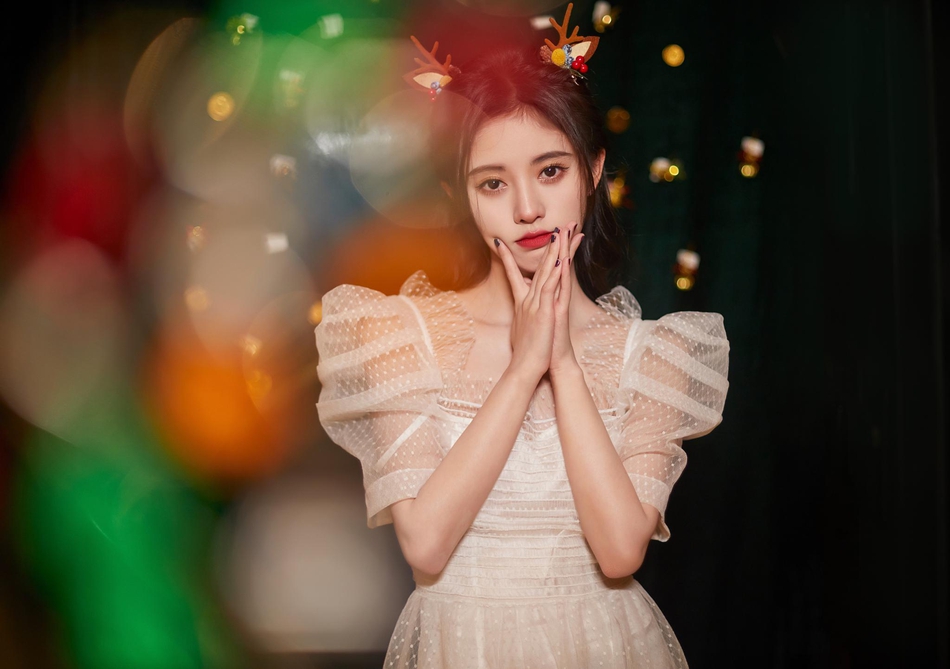 新浪娱乐讯 12月24日,鞠婧祎工作室晒出一组圣诞写真,照片中鞠婧祎身穿白色蕾丝纱裙,头戴鹿角,仙气十足。