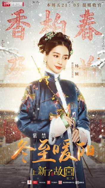 除了物理取暖,今晚的节目里还将揭秘古人的“意念取暖”。作为古代紫禁城的三大节日之一,冬至那天皇宫里和民间一样,都有相关的节日习俗,比如民间非常熟悉的“数九”,在宫里也非常流行。本期节目中,杨颖将化身紫禁城“最美妃子”,演绎“意念取暖”的意趣。