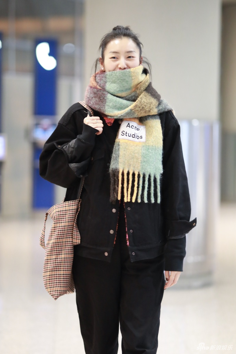 新浪娱乐讯 2020年1月11日,北京,刘雯现身机场。她全黑look打扮休闲,高扎丸子头裹围巾御寒巧遮素颜,对镜甜笑眉目清秀,眼神灵动元气十足。