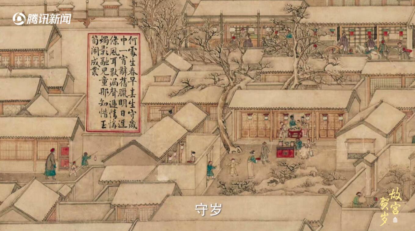 《故宫贺岁》第三期让我们得以一饱眼福,欣赏到清代知名画师徐扬的画作《京师生春诗意图》,在该画中,画师徐杨详细地描绘了清代过年从腊月初一到二月初三这段热闹的时间流动过程,也记录了“馈岁”,即年节时分家家户户互赠礼物等种类繁多的过节习俗。