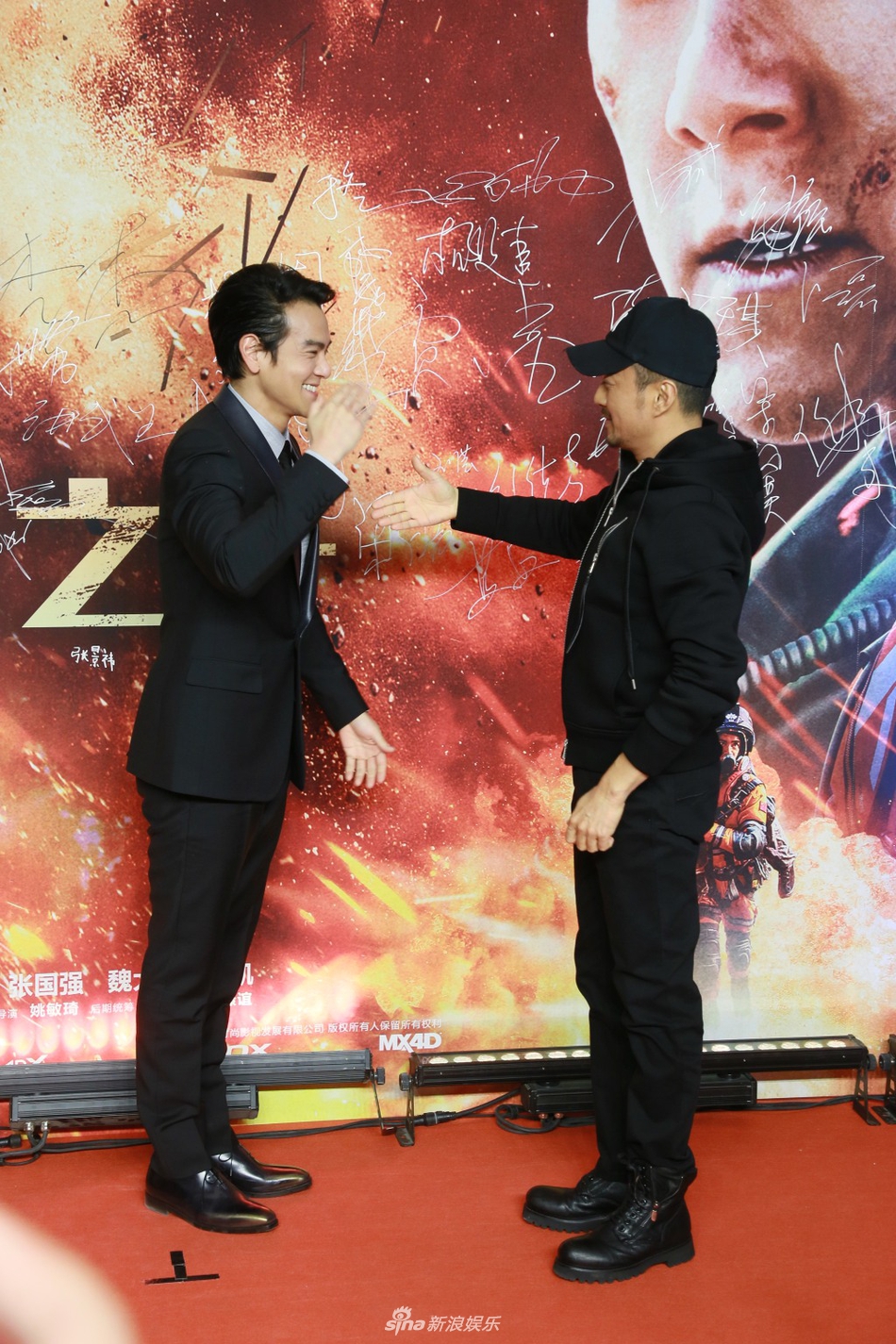新浪娱乐讯 1月15日,彭于晏、张涵予、王彦霖、辛芷蕾、蓝盈莹、徐洋、魏晨、冯文娟等明星出席电影《紧急救援》首映礼。张涵予惊喜亮相,获彭于晏敬礼、拥抱、举高高,《紧急救援》的“高队”遇上《湄公河行动》的“高队”,二人惺惺相惜关系十分要好。