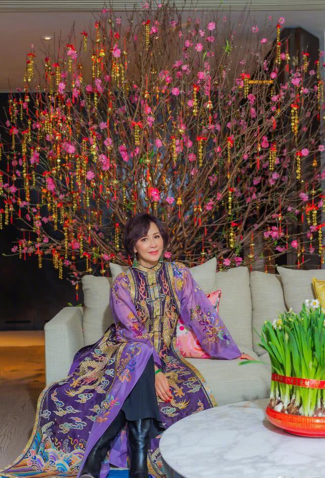 新浪娱乐讯 近日,刘嘉玲在社交平台晒出了自己的新年写真照,带着妈妈一同出镜。照片中刘嘉玲穿紫色龙纹唐装,带翡翠首饰,贵气十足。刘妈妈穿黑色西装外套搭配格纹衬衫,端庄优雅。