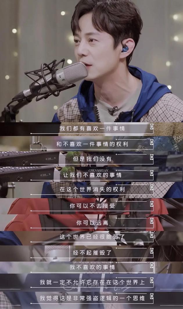 新浪娱乐讯 近日,何炅在节目中的一段看法引起热议,他谈到了喜欢和不喜欢的权利,表示“我们都有喜欢一件事和不喜欢一件事的权利,但是我们没有让我们不喜欢的事情在这个世界消失的权利。你可以不去接受,你可以远离,这个世界已经很脆弱了,经不起摧毁了。我不喜欢的事情,就一定不允许它存在在这个世界上,这是非常强盗逻辑的思维。”这段看法让不少网友联系到前段时间粉丝吵架及举报事件。