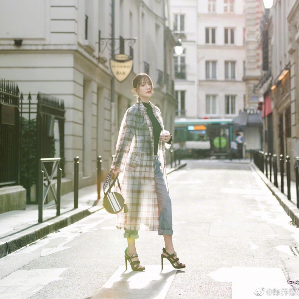 陈乔恩分享街拍美照长腿抢镜 踩恨天高过斑马线气场十足