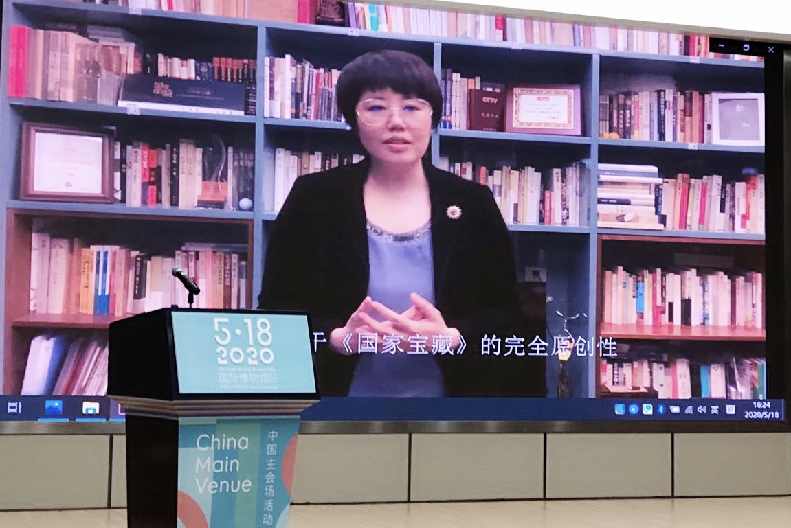 图:《国家宝藏》制片人、总导演于蕾在国际博物馆日中国主会场活动主旨论坛中视频连线发言