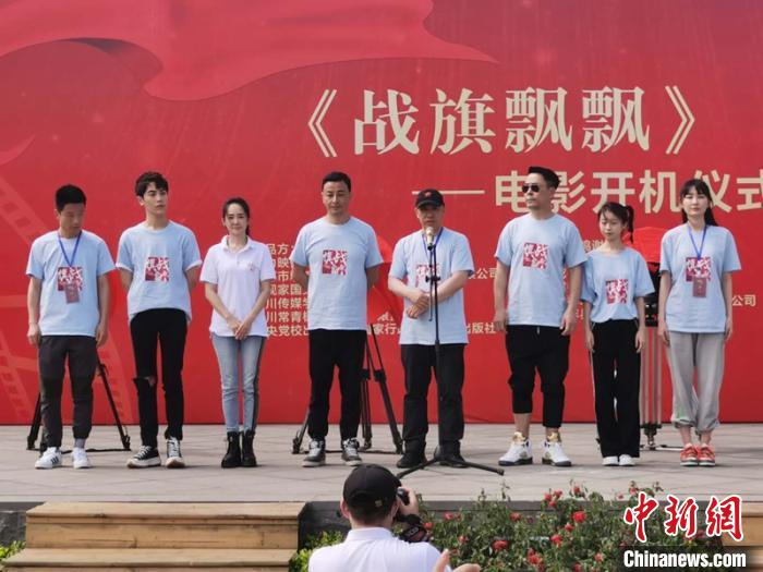 中新网成都5月19日电(王爵)首部乡村振兴题材主旋律电影《战旗飘飘》于19日在成都郫都先锋村开机,该片主创团队和多位国内知名演员集体亮相开机仪式现场。