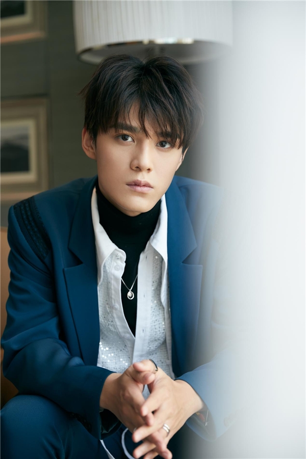 当日袁梓铭身穿饰有黑色蕾丝细节的靛蓝色西装,搭配白色珠片衬衫和黑色高领衫,更加凸显他精致的脸庞和沉静气质。被问到平时的穿搭风格,袁梓铭表示自己平时的生活就是来往与学校和练习室,私下都穿得像一个普通大学生,“之前就是运动休闲风吧,但是现在也会在意一下日常搭配的时尚度。”