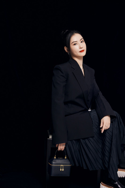 张柏芝最新黑色西装写真 利落盘发显优雅