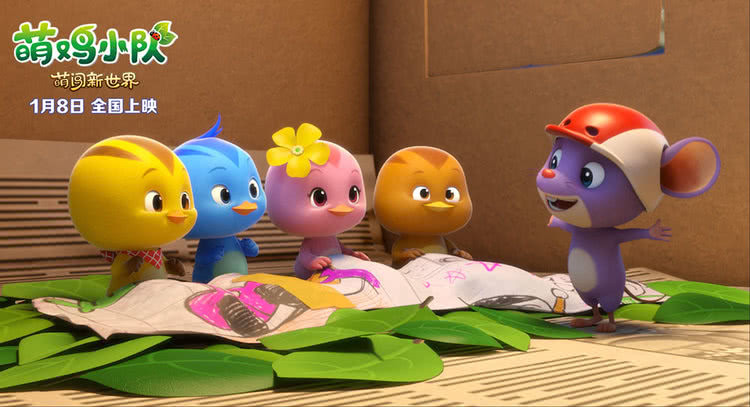 《萌鸡小队》首部大电影《萌鸡小队:萌闯新世界》宣布定档2022年1月8日全国上映后,一直备受全国家长和孩子们的期待。超200亿播放量的“动画神作”终于迎来大银幕首秀,与全国的家长和孩子欢乐相约电影院。故事讲述了萌鸡妈妈带着四个小萌鸡宝宝大宇、朵朵、欢欢、麦奇要穿越城市搬去新家,在过程中结识新朋友,和他们一起展开了一段欢乐又充满状况的冒险。