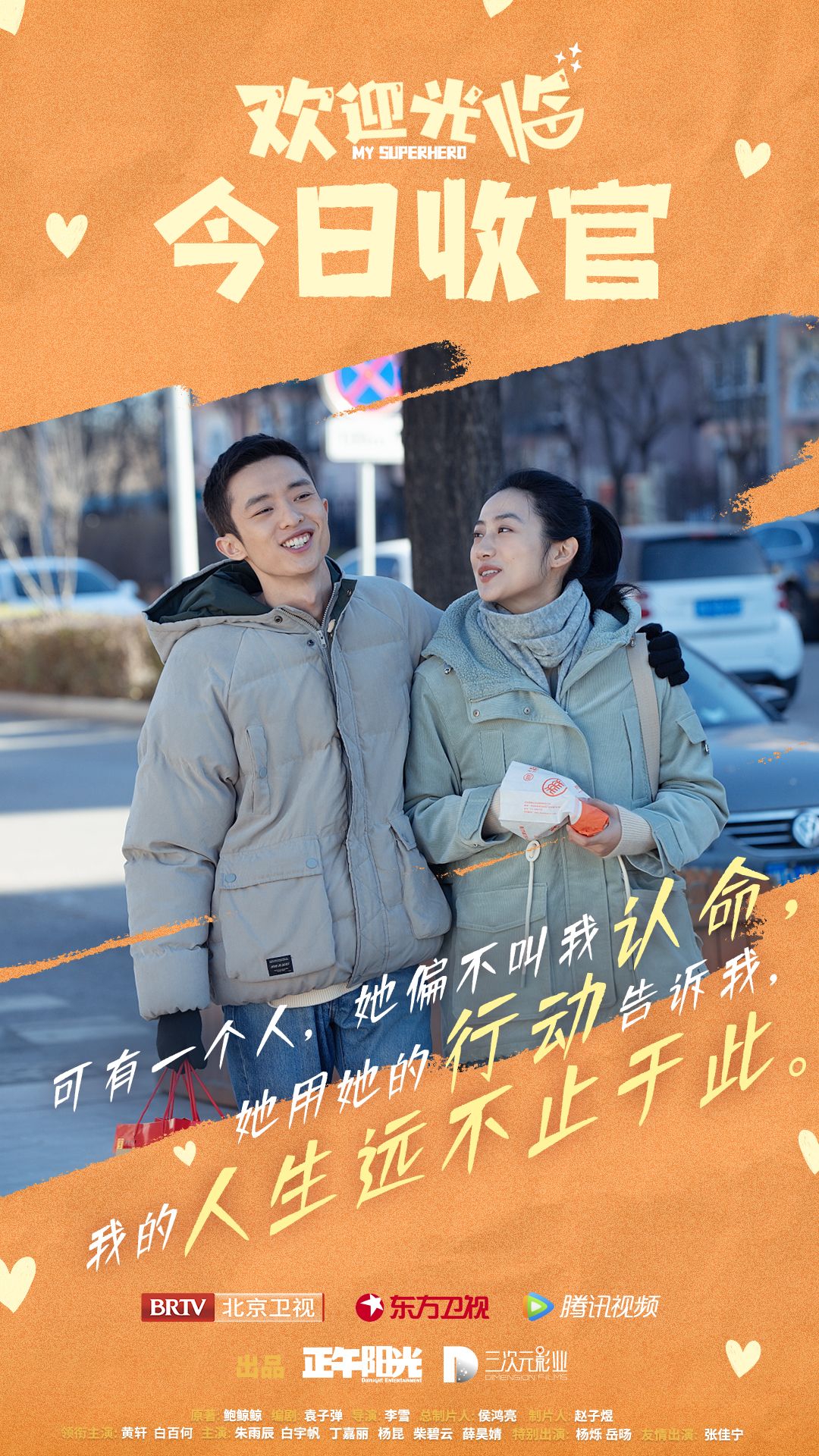 由正午阳光、三次元影业出品,改编自鲍鲸鲸小说《我的盖世英熊》,袁子弹任编剧,李雪执导,侯鸿亮任总制片人,赵子煜任制片人,黄轩、白百何领衔主演,朱雨辰、白宇帆、丁嘉丽、杨昆、柴碧云、薛昊婧主演,杨烁、岳旸特别出演,张佳宁友情出演的都市生活轻喜剧《欢迎光临》将于今日在北京卫视、东方卫视收官,腾讯视频22:00释出大结局,会员收官。该剧播出期间,热度持续走高,腾讯视频站内吸引大批忠实追剧用户,讨论不断,卫视收视率连日破1,多日蝉联卫视黄金时段收视率日冠。该剧凭借笑泪齐飞的剧情、真实接地气的生活细节、鲜活的小人物角色,以温暖治愈的情感力量,赢得观众的口碑与赞誉。剧中几对年轻人的工作、情感走向和阿姨们备战广场舞大赛的曲折历程始终牵动着观众的心,引发沉浸式追剧热潮。