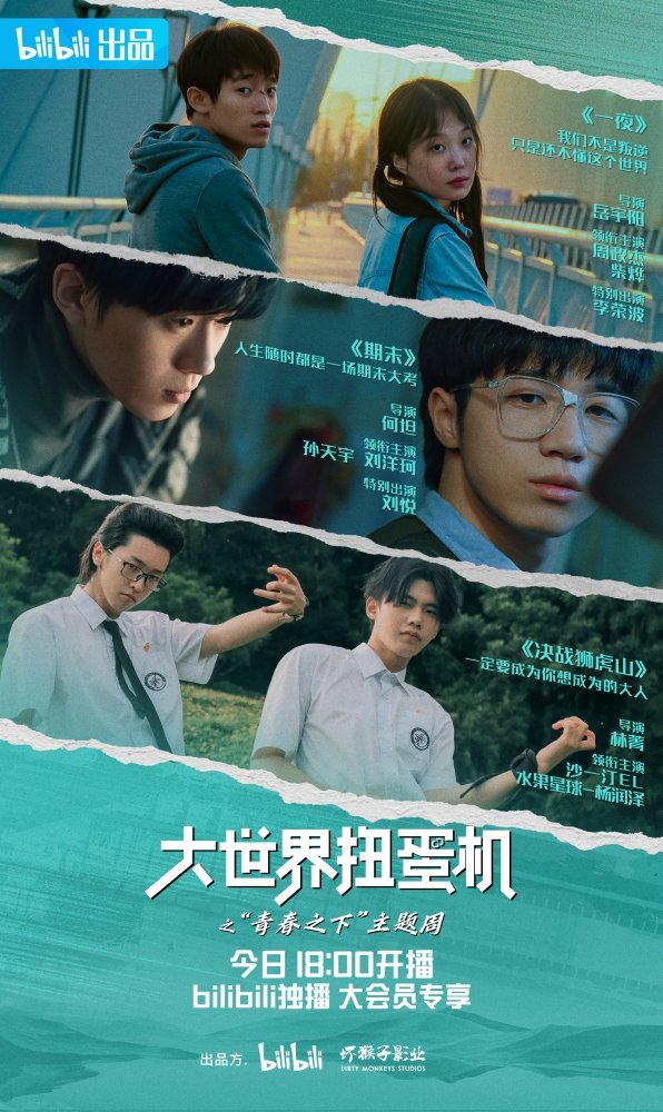 由哔哩哔哩联合坏猴子影业,共同打造的《大世界扭蛋机》系列电影短片于6月23日起正式开播,每周四晚18:00在B站平台独家上线。作为第四个亮相的主题单元,“青春之下”三部电影短片于7月14日如期与观众见面。青春洋溢的年轻面孔、青春叙事的多元表达,不仅令人耳目一新,也为《大世界扭蛋机》系列电影短片画上了圆满句号。