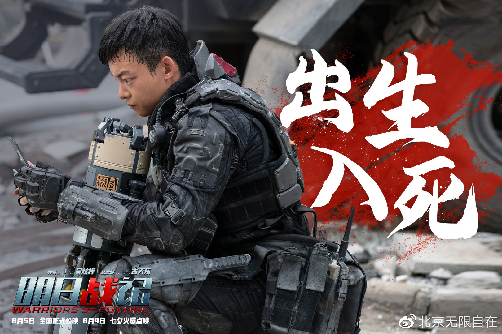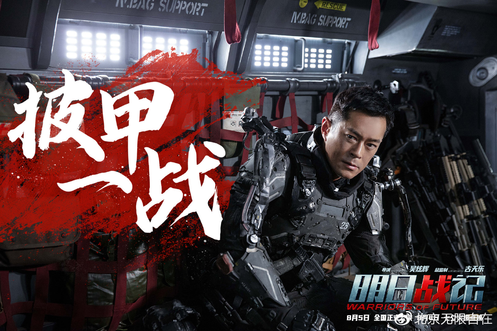 中国第一部科幻机甲巨制《明日战记》今日首次曝光全阵容主海报,硬核战队全员集结拯救地球,强大阵容引燃今夏机甲狂潮。该片由吴炫辉执导,古天乐担任总监制,古天乐、刘青云、刘嘉玲领衔主演,姜皓文、谢君豪、吴倩、万国鹏主演,张家辉友情客串,刘浩良、麦天枢担任编剧,此前已宣布将于8月4日七夕点映,8月5日正式上映。