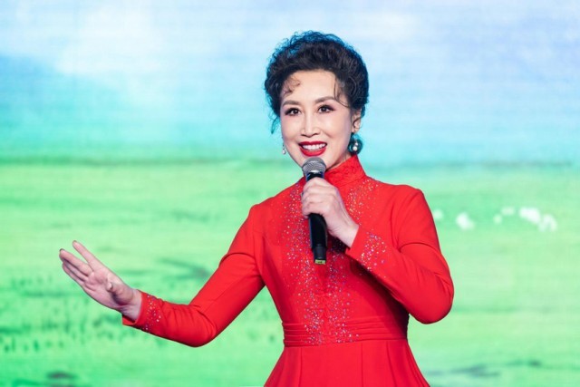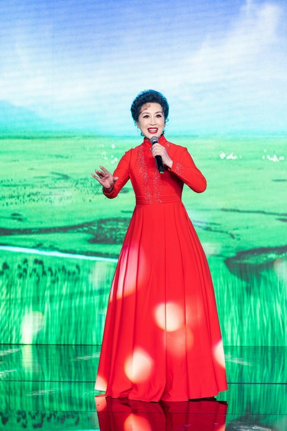 “踏歌起舞的中国,走过坎坷,阳光的琴弦,在都市乡村弹拨,踏歌起舞的中国,繁荣祥和,踏歌起舞的中国,繁荣祥和,幸福的歌谣,洒遍了每个角落,每个角落!”在歌曲《踏歌起舞的中国》中,国家一级演员、女高音歌唱家、前中国国安乐团团长冯欣老师的演唱可圈可点,醇美萦耳,一开口,就如同一团火焰温暖着全场的观众,又像一股清风温润着观众的心灵,冯欣老师希望大家能喜欢这首歌曲,让大家在欢快喜庆中歌唱美好的新时代!
