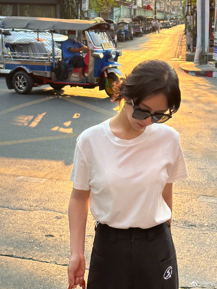 新浪娱乐讯 4月14日,杨紫晒照悠享下午时光,太阳花耳坠搭白T温柔风十分动人。