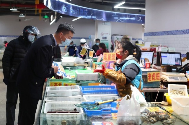 上海民警走进菜市场对摊主进行反诈“个别辅导”(蒋迪雯 摄)