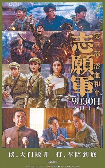 三年国庆之约,共迎和平终章。电影《志愿军:浴血和平》昨日全国上映。至此,《志愿军》系列已全部与观众见面。三部曲全景式呈现抗美援朝战争始末,最终章则在“边打边谈”的双线叙事中迎来期盼已久的和平。同步发布的“黄继光 英雄魂”预告,展现了以黄继光为代表,在朝鲜战场上奋不顾身、为和平而战的英雄群像。