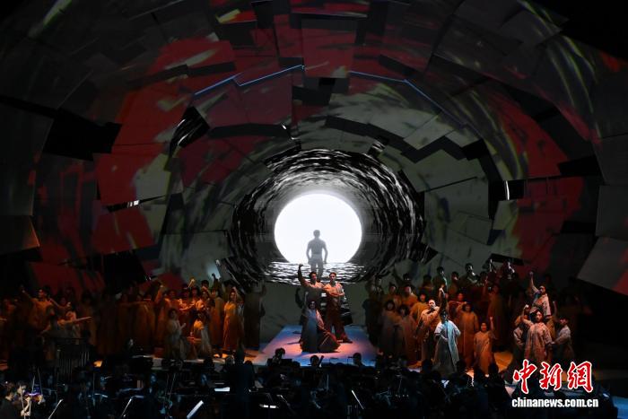中新网北京10月29日电 (记者 应妮)由中国音乐学院出品、中国音乐学院艺术实践中心制作的大型多媒体合唱剧《聂耳的歌》日前在国家大剧院演出。该剧以人民音乐家聂耳短暂而辉煌的一生为经纬,通过合唱剧这一创新形式,将《义勇军进行曲》《卖报歌》等经典作品与人生故事娓娓道来。同时,该剧从策划、创作到表演全链条的“学院力量”,也展现了中国音乐学院“以演促教、演学结合”人才培养模式的丰硕成果。