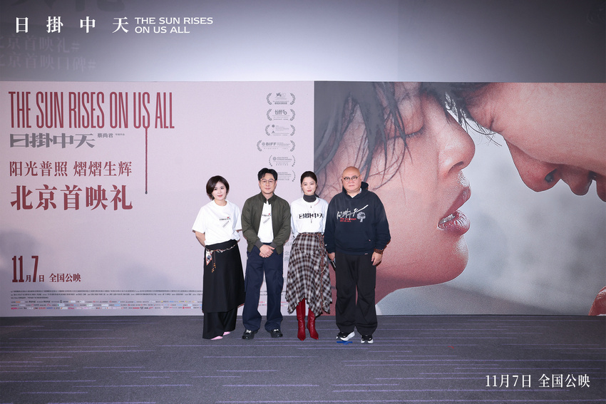 电影《日掛中天》于昨日举行"阳光普照 熠熠生辉"北京首映礼。影片导演兼编剧蔡尚君、领衔主演辛芷蕾、张颂文及总制片人马双共同出席,与满场观众展开真诚对谈,分享作品背后深沉的情感脉络与艺术追求。现场气氛温暖而热烈,多位业内同仁现身支持,就影片呈现的生命困境与人性深度展开探讨。