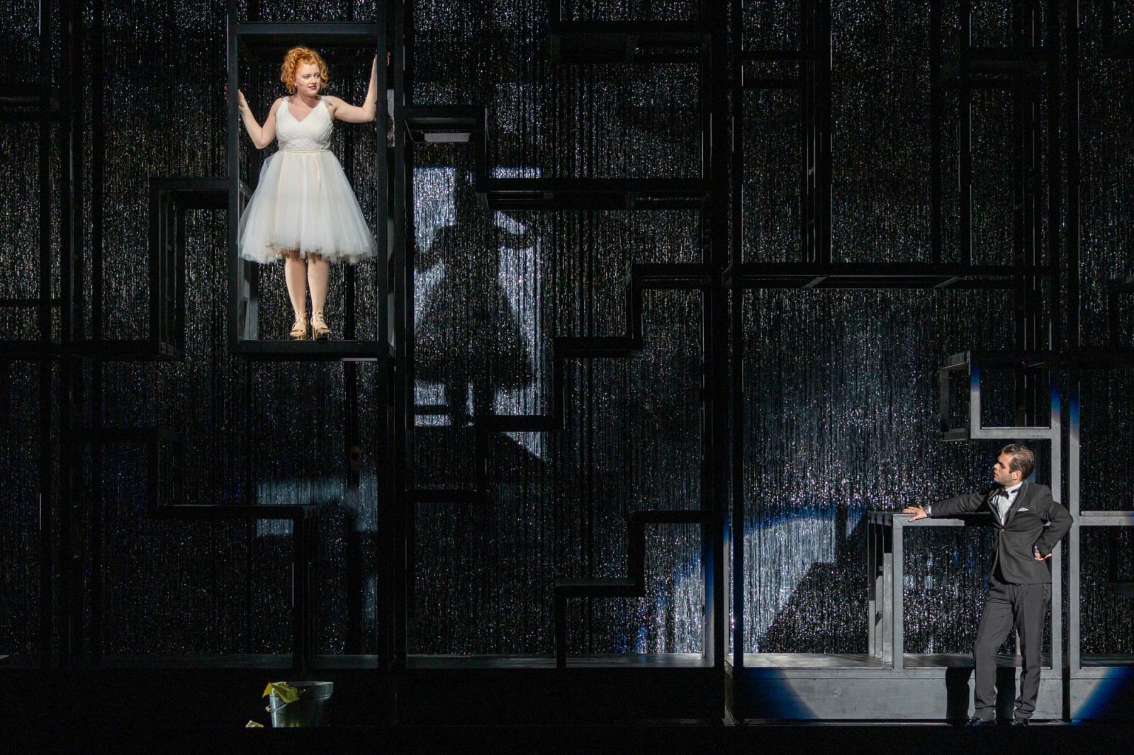 六个高耸入顶的巨大金属脚手架,让舞台变成钢筋结构的迷宫世界;流光溢彩的银色丝带幕布,在灯光下渲染出纸醉金迷又支离破碎的人生;乐池中的七人现场乐队奏响让人上头的爵士风格音乐;演员们在“格子间”以癫狂又戏谑的当代德式戏剧美学风格,演绎布莱希特百年前的经典社会寓言……11月15、16日,由戏剧家布莱希特创立的传奇剧团——德国柏林剧团演出的布莱希特经典之作《三分钱歌剧》亮相首都剧场舞台。这部同时受到今年上海国际艺术节和北京人艺国际戏剧邀请展青睐的作品,不仅让我们见识到布式戏剧魅力,也为中国戏剧创作带来启示。