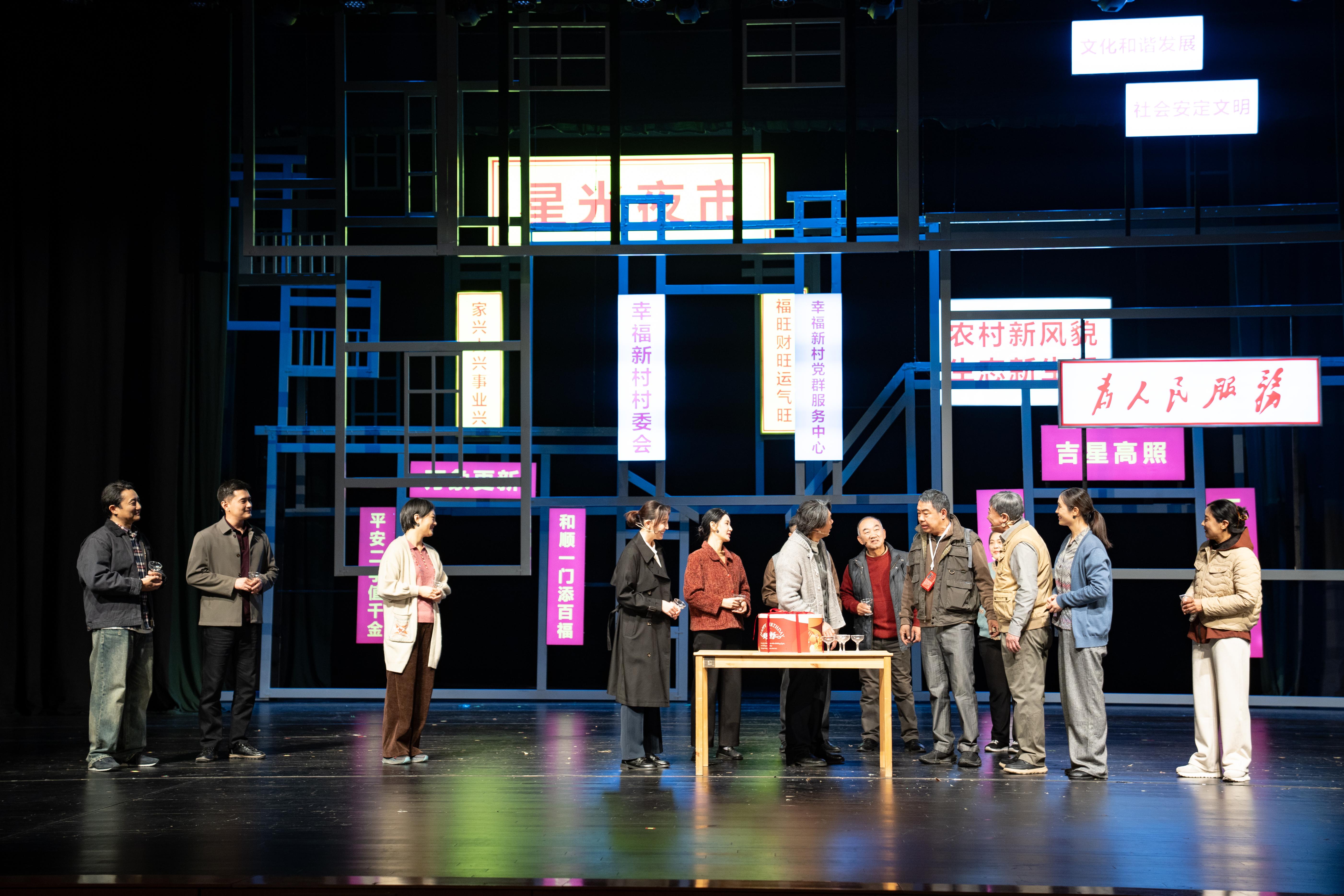 四十多位高丽营村民亲自上台参演话剧,他们通过“身边人演身边事”的方式实现专业艺术家与本地居民的深度交融,让基层村民成为节目的“共创者”。演出中,接地气的台词生动鲜活、机智幽默、金句频出,台下笑声不断,掌声连连。一位观众表示,“演的简直就像我们家旁边的事情,现在更加体会到基层工作者的艰辛和不容易”。